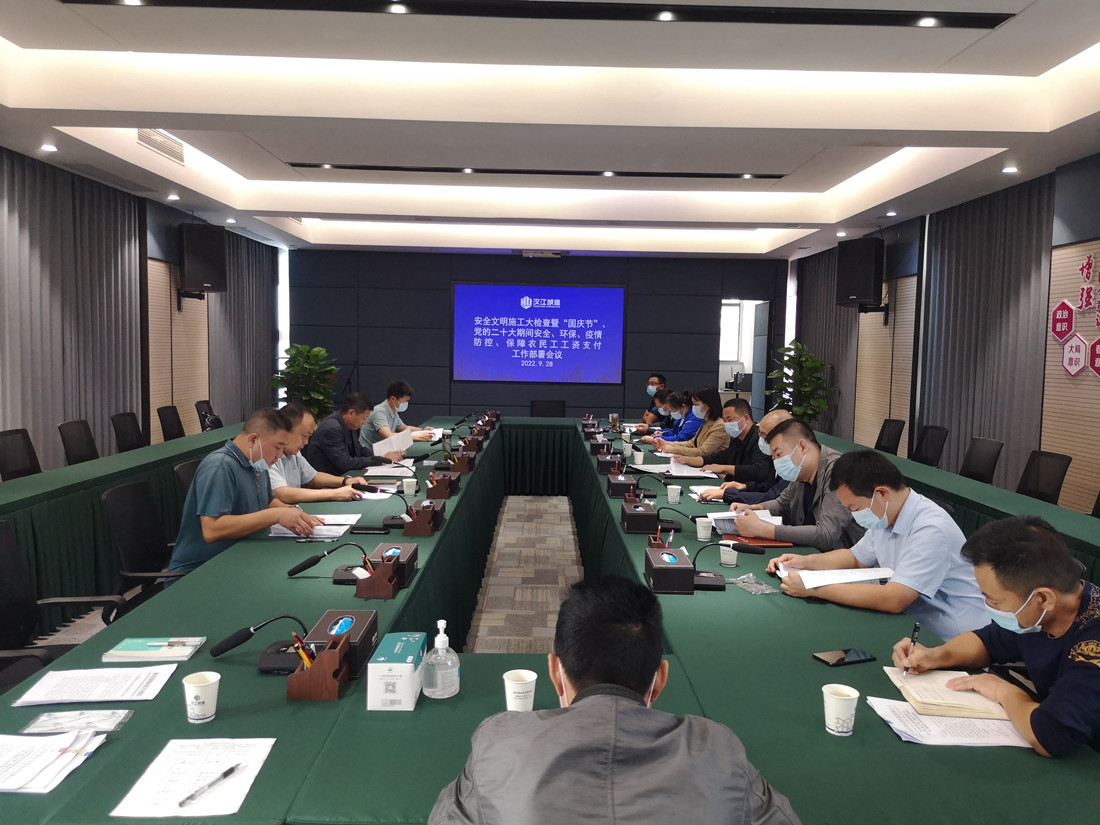 為進一步壓緊壓實安全生產(chǎn)工作責任,堅決抓好安全、環(huán)保、疫情防控、保障農(nóng)民工工資支付工作,為黨的二十大勝利召開營造安全穩(wěn)定的社會環(huán)境,漢江城建于9月28日上午組織召開了工作部署會,公司相關負責人,相關部室及各分子公司共16人參加會議。