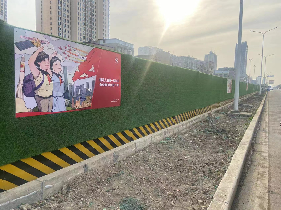 因項(xiàng)目周邊往來(lái)車輛多、行駛速度快,無(wú)形中給施工增加了很大難度,交安公司全體施工人員在保證自我安全的基礎(chǔ)上,積極克服環(huán)境困難,用最短時(shí)間圓滿完成了160米圍擋安裝的工作任務(wù)。