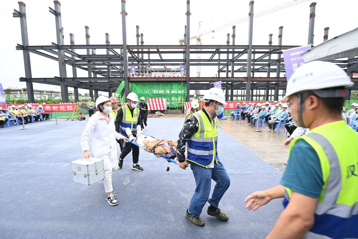 活動伊始,項(xiàng)目負(fù)責(zé)人進(jìn)行安全工作匯報,并做了表態(tài)發(fā)言;接著,安全工作負(fù)責(zé)人帶領(lǐng)現(xiàn)場百余名干部職工,進(jìn)行莊嚴(yán)的集體宣誓;活動中,應(yīng)急演練小組模擬了高空拋物導(dǎo)致人員遭受物體打擊事故,真實(shí)模擬突發(fā)事件處理全過程,加深了全員對“三違”行為危害性的認(rèn)識,掌握了現(xiàn)場急救知識,提高了應(yīng)急處理能力。隨后,漢江城建法律顧問何群濤律師開展了《安全生產(chǎn)法》普法宣傳,對項(xiàng)目管理人員進(jìn)行安全生產(chǎn)專項(xiàng)法律培訓(xùn),并通過放置展板、LED屏投放、發(fā)放宣傳冊等方式開展普法宣貫工作。