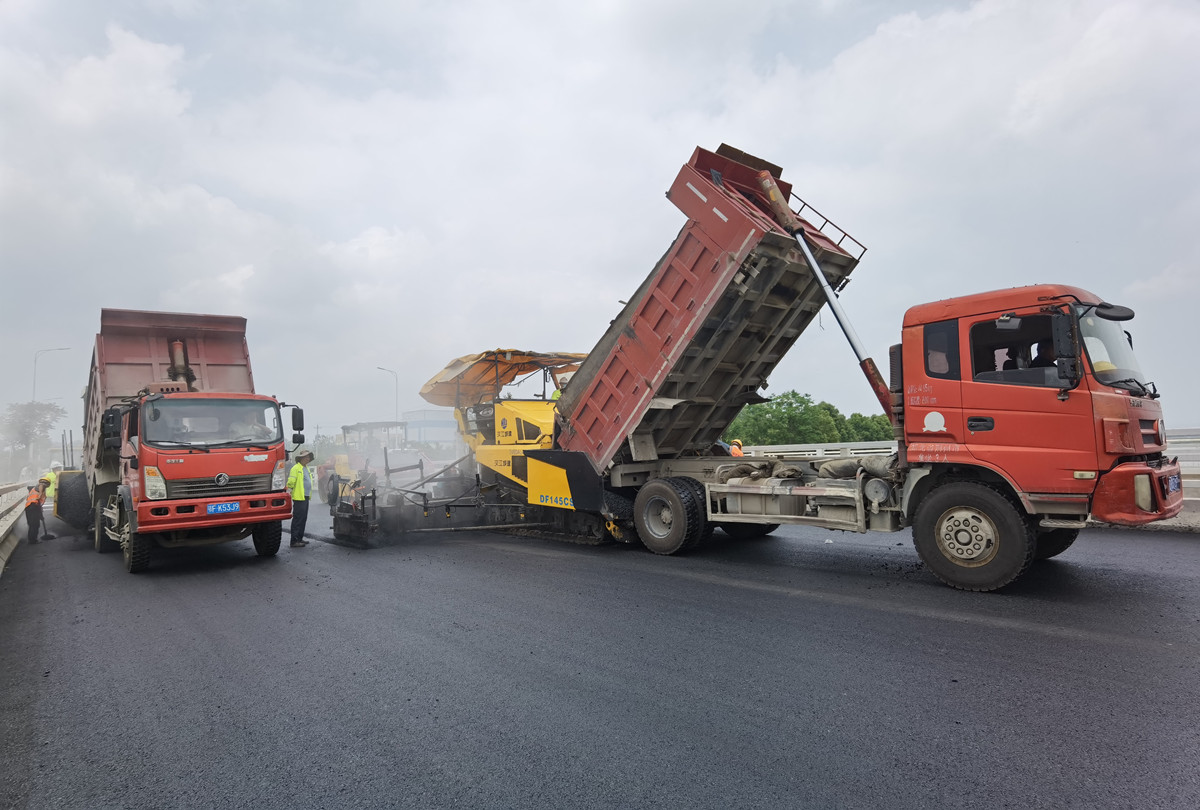 5月31日,第三分公司按照南漳縣發(fā)展大道改建工程圖紙設(shè)計要求,進行瀝青上面層SMA瀝青瑪蹄脂瀝青混凝土試驗段的鋪筑。