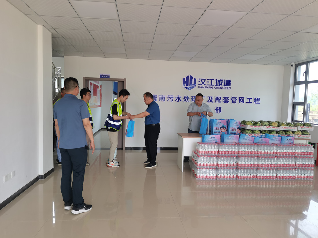 7月10日上午,集團(tuán)黨委委員、董事謝鋒一行深入襄南污水處理廠及配套管網(wǎng)項目,為奮戰(zhàn)在作業(yè)一線的員工送來了礦泉水等防暑降溫物品,把清涼送到了生產(chǎn)一線,把關(guān)懷送到員工心坎。