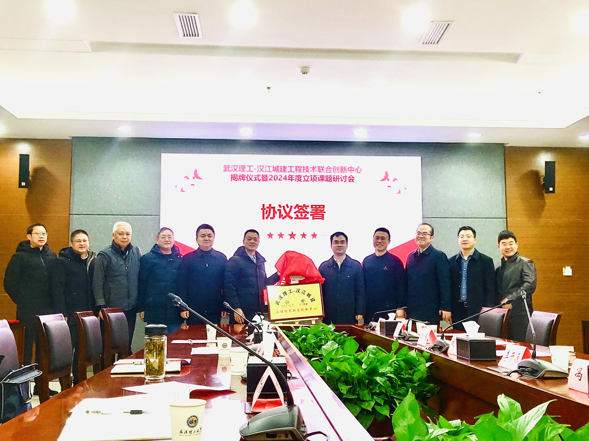 1月20日,武漢理工-漢江城建工程技術(shù)聯(lián)合創(chuàng)新中心在武漢理工大學(xué)舉行揭牌儀式。武漢理工大學(xué)科技合作與成果轉(zhuǎn)化中心主任胡劍、安全應(yīng)急學(xué)院院長趙開源、漢江城建黨委副書記、副董事長、總經(jīng)理蔡軍,副總經(jīng)理靖普及相關(guān)負(fù)責(zé)人和師生代表等出席揭牌儀式。