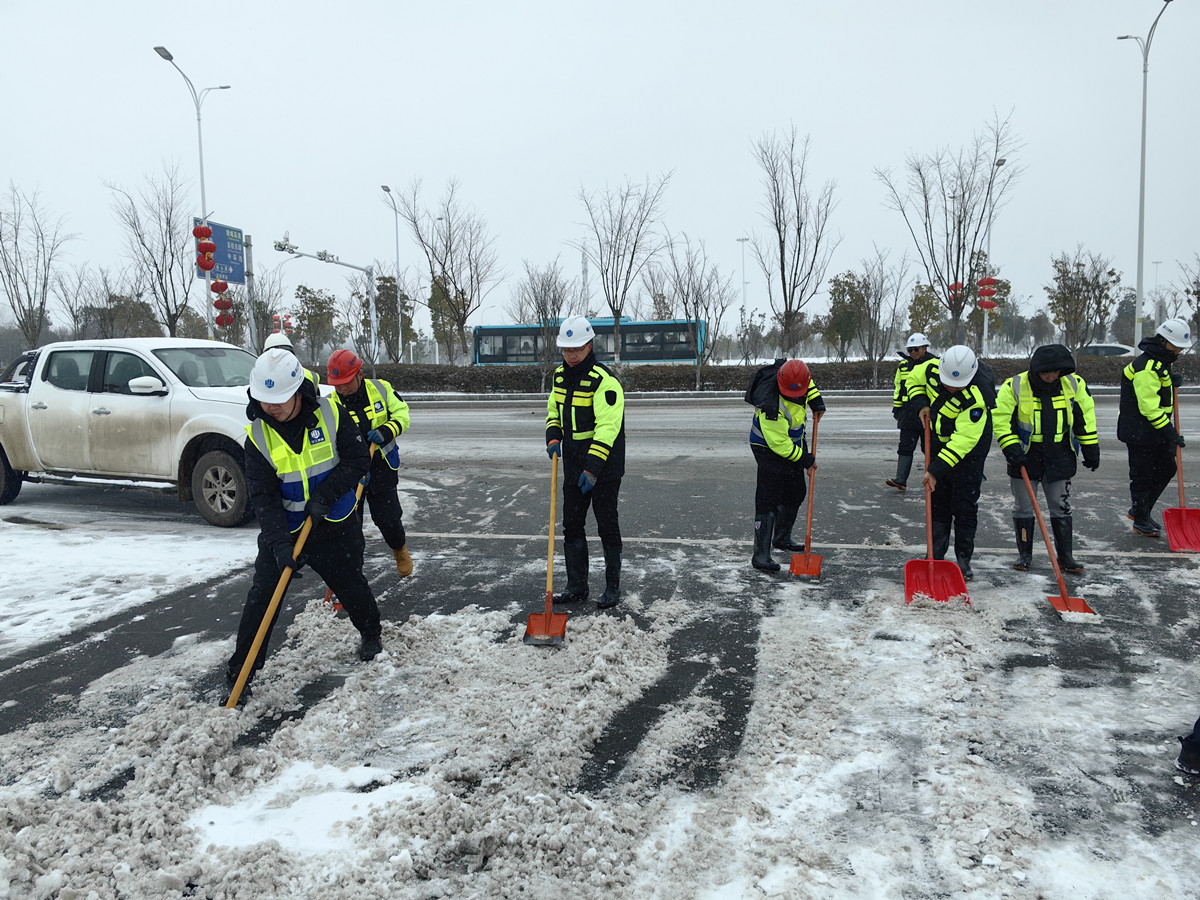 此次活動是由東津新區(qū)(經(jīng)開區(qū))城鄉(xiāng)建設(shè)局組織,漢江城建集團有限公司和中化六建襄陽工程公司積極響應(yīng),全力投入到鏟冰除雪志愿活動中。在掃除冰雪的過程中,大家齊心協(xié)力、合理分工、配合默契,手拿鐵鍬、掃把,你一鍬、他一鏟,干的熱火朝天,忙碌的身影構(gòu)成了一道生機盎然的風(fēng)景線。經(jīng)過2個多小時的奮戰(zhàn)將襄陽東站北進站口、高鐵南路與現(xiàn)代大道交叉口、襄職東津校區(qū)項目部周邊道路的積雪清理完畢,保障了路過行人的安全出行和道路的暢通。