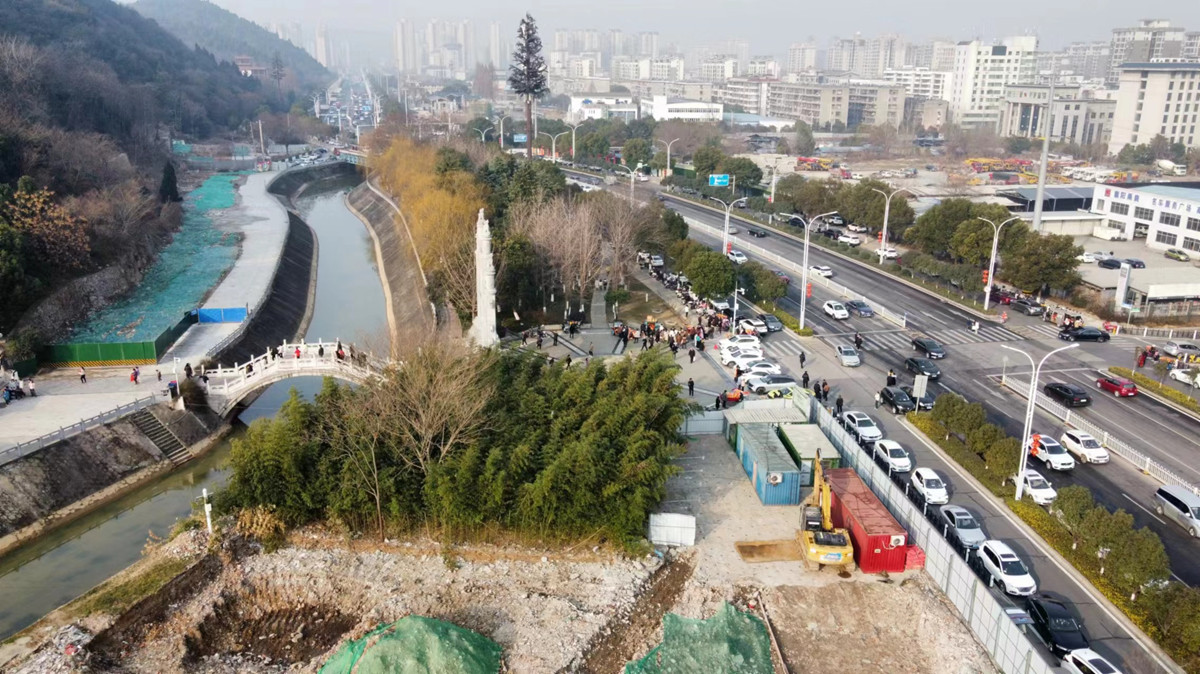 襄水岸線修復生態(tài)提升項目(檀溪路東真武山片區(qū))工程施工位于環(huán)城南路南側,西起青龍廟路,東至青山橋路,全長約500米,占地面積約41000平方米。建設內容主要包括襄水檀溪東真武山片區(qū)內河道整治、市政道路、配套服務驛站、地下停車場、配套給排水、園林景觀綠化、照明、水電及部分山體邊坡整治等。建成后將優(yōu)化觀賞空間和交通流線,并將景點與自然水系駁岸相連,使該景點與周邊自然環(huán)境相融合,打造真武山片區(qū)山水主題休閑廊道,營造“紀功銘”、“馬躍檀溪”兩個文化體驗,融綠色生態(tài),親水休閑于一體的城市風光帶。
