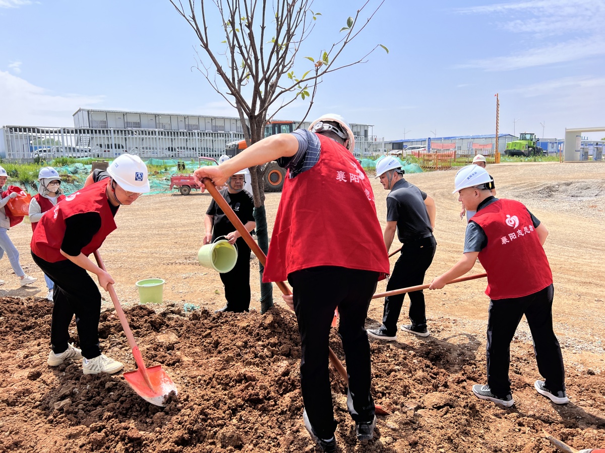 緊接著,雙方共同在國創(chuàng)公司內(nèi)部開展了一場別開生面的植樹活動。眾人齊心協(xié)力,揮鋤挖土、扶苗培土、提水澆灌,一棵棵小樹苗在辛勤勞作中扎根于土,為這片區(qū)域注入了新的生機(jī)與活力。