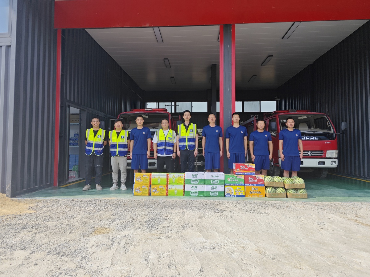 6月7日上午,漢江城建襄陽綜合保稅區(qū)總部經(jīng)濟(jì)區(qū)項(xiàng)目負(fù)責(zé)人帶領(lǐng)項(xiàng)目部員工,赴高新區(qū)軒逸路裝配式消防救援站,開展“送清涼”活動(dòng),慰問在烈日炎炎下堅(jiān)守崗位的消防員。