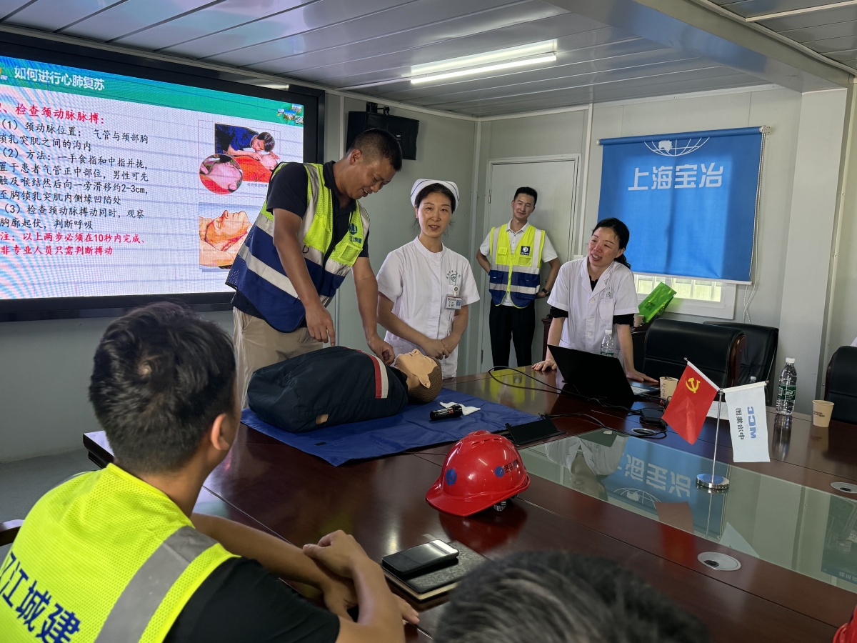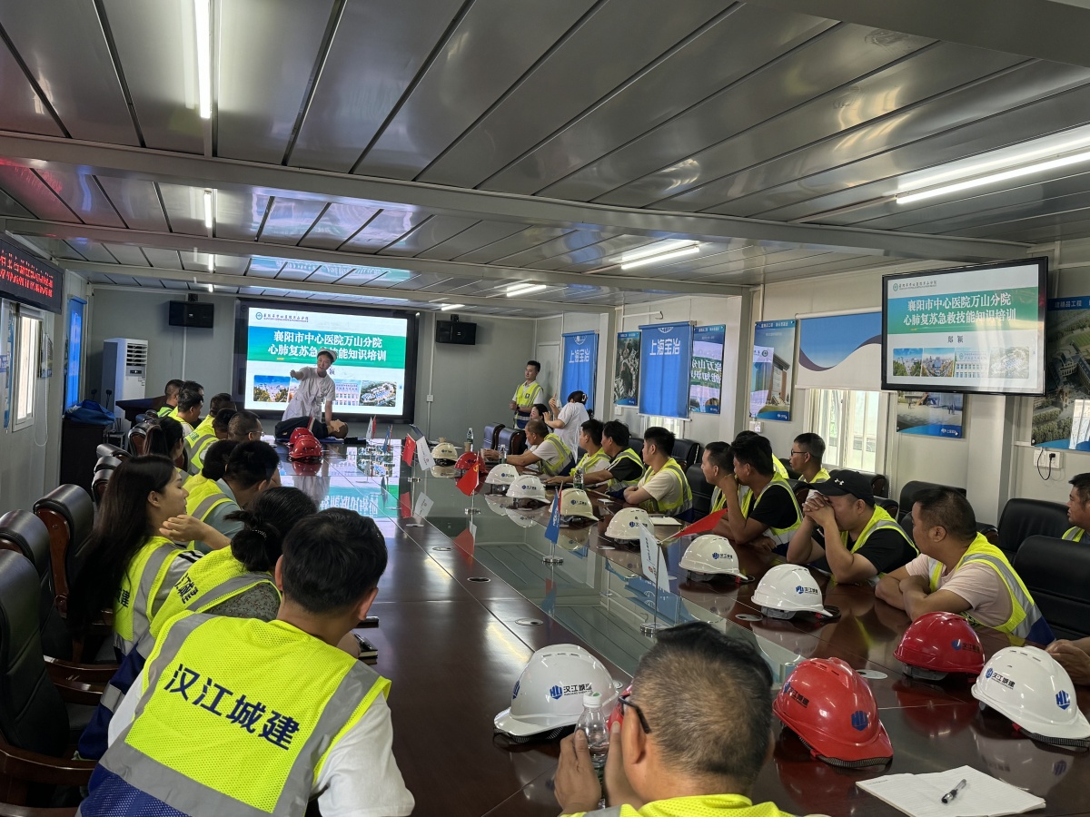 為提高對突發(fā)情況和意外事件的自救和互救能力,進一步增強施工現(xiàn)場一線人員的自我保護意識,8月1日,湖北文理學(xué)院遷建項目邀請襄陽市中心醫(yī)院萬山分院急診科醫(yī)生到施工一線,開展心肺復(fù)蘇急救技能知識培訓(xùn)。