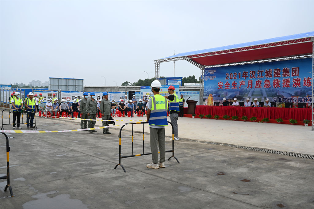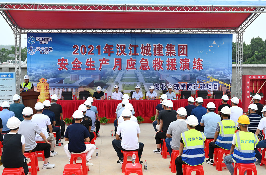 為進(jìn)一步加強(qiáng)公司應(yīng)對突發(fā)事故的綜合指揮能力、快速反應(yīng)能力、應(yīng)急處理能力和協(xié)調(diào)作戰(zhàn)能力,提高公司應(yīng)急救援水平。6月16日上午,漢江城建在湖北文理學(xué)院遷建項(xiàng)目開展“安全生產(chǎn)月”觸電安全事故應(yīng)急救援演練,漢江國投項(xiàng)目管理部副部長宋崇斌、安全專員馬駿和漢江城建董事長盧國宏、總經(jīng)理蔡軍、董事謝鋒觀摩了本次活動。