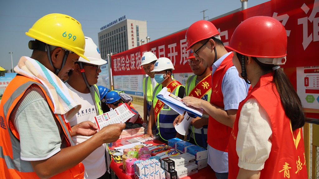 每年6月16日是全國(guó)統(tǒng)一的安全生產(chǎn)宣傳咨詢?nèi),漢江城建聯(lián)合中鐵十一局、陸港公司、東風(fēng)鴻遠(yuǎn)咨詢公司圍繞全國(guó)第21個(gè)“安全生產(chǎn)月”,以“遵守安全生產(chǎn)法,當(dāng)好第一責(zé)任人”為主題,深入貫徹落實(shí)《安全生產(chǎn)法》,在襄陽綜合保稅區(qū)總部經(jīng)濟(jì)區(qū)項(xiàng)目開展“安全生產(chǎn)宣傳咨詢?nèi)?rdquo;活動(dòng),著力宣傳安全生產(chǎn)領(lǐng)域法律法規(guī)、安全生產(chǎn)十五條硬措施等相關(guān)知識(shí)。
