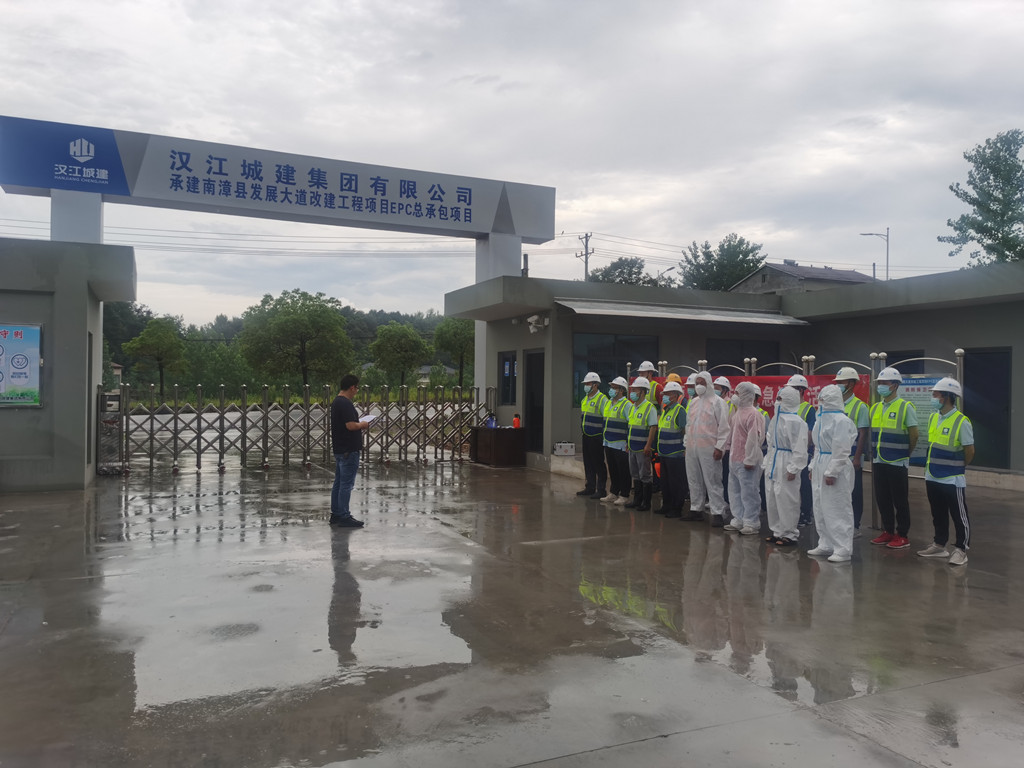 “安全第一、預(yù)防為主”,為依法、科學(xué)、規(guī)范、有效地開展新冠肺炎的預(yù)防和救治工作,強(qiáng)化全項目的應(yīng)急處置意識,6月23日,漢江城建集團(tuán)團(tuán)委聯(lián)合第二分公司在南漳縣發(fā)展大道改建工程項目EPC總承包項目部開展“安全生產(chǎn)月”疫情防控應(yīng)急演練活動,漢江城建紀(jì)委書記曹晶晶、團(tuán)委及第二分公司各在建項目經(jīng)理、總工、安全員參加此次活動。