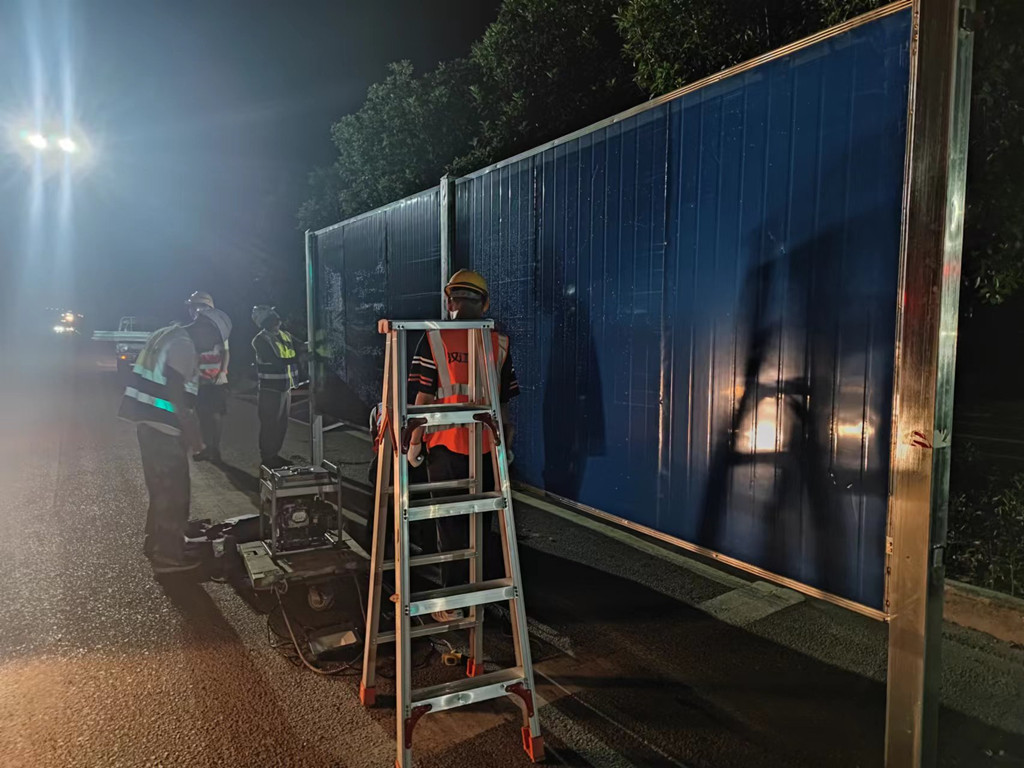 2022年7月2日,靜謐夜晚,萬家燈火,大家忙碌一天都在享受夜晚的沉靜,可在南漳縣發(fā)展大道的施工現(xiàn)場,圍擋安裝未曾停止。交安公司管理人員李旋東等同志與現(xiàn)場施工人員一同,堅守一線、挑燈夜戰(zhàn),只為保障南漳縣發(fā)展大道改建項目施工順利進(jìn)行。