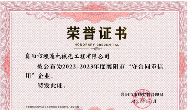 喜訊!程通機(jī)械化公司憑借其在市場(chǎng)經(jīng)營(yíng)中的卓越表現(xiàn)和對(duì)合同精神的嚴(yán)格遵守,榮獲了由襄陽(yáng)市市場(chǎng)監(jiān)督管理局頒發(fā)的襄陽(yáng)市2022&mda
