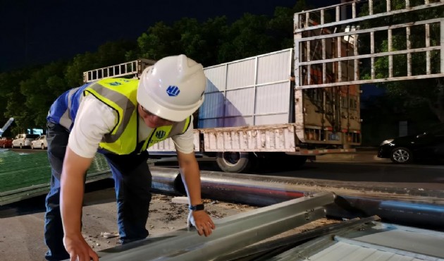 2024年8月2日夜,在名城路上,一處繁忙的施工工地?zé)艋鹜鳎话补締T工正加班加點(diǎn)拆除圍擋,為城市交通便利默默付出。拆除圍擋