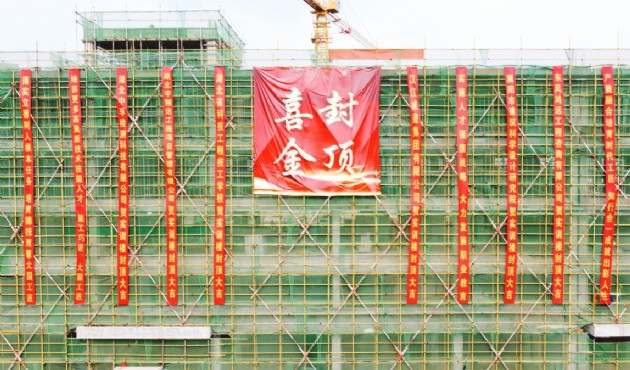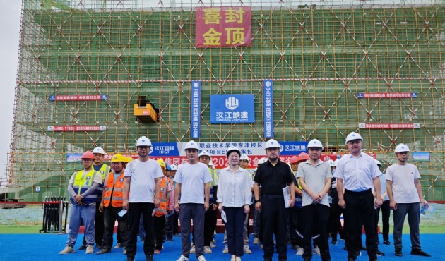 奮進正當時——湖北省科技工程技工學校項目首棟樓喜封金頂