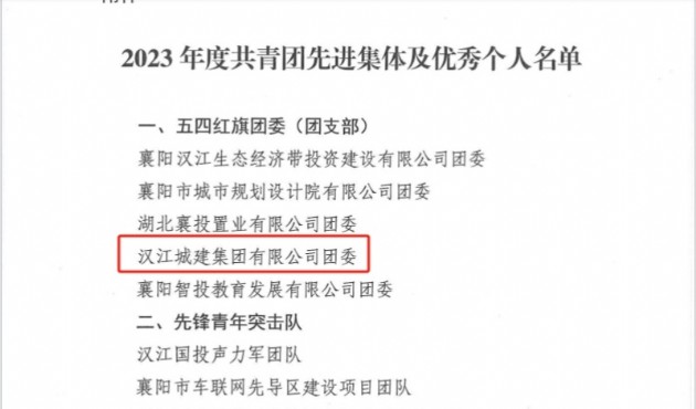 近日,漢江國投團委印發(fā)《關(guān)于表彰2023年度共青團工作先進集體和優(yōu)秀個人的通報》(漢江國投青發(fā)〔2024〕2號),漢江城建團委獲評