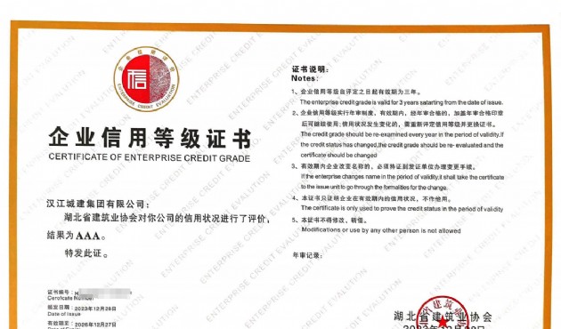 漢江城建再獲“AAA級信用企業(yè)”認證