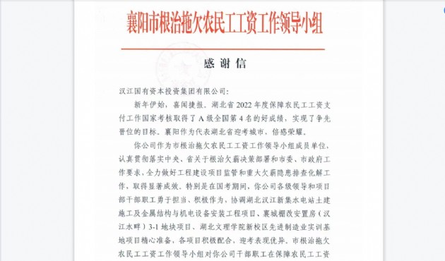 一封感謝信,見證漢江城建團隊的力量與擔當!