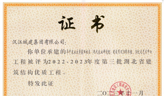 華中農(nóng)業(yè)大學(xué)襄陽校區(qū)(現(xiàn)代農(nóng)業(yè)研究院)建設(shè)項目榮獲“湖北省建筑結(jié)構(gòu)優(yōu)質(zhì)工程”稱號