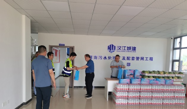 7月10日上午,集團(tuán)黨委委員、董事謝鋒一行深入襄南污水處理廠及配套管網(wǎng)項(xiàng)目,為奮戰(zhàn)在作業(yè)一線的員工送來(lái)了礦泉水等防暑降溫物品