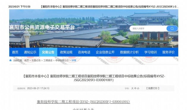 喜訊!漢江城建中標(biāo)襄陽技師學(xué)院二期工程項(xiàng)目