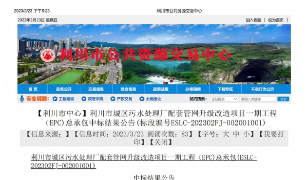 中標(biāo)利川市城區(qū)污水處理廠配套管網(wǎng)升級(jí)改造項(xiàng)目一期工程(EPC)總承包項(xiàng)目