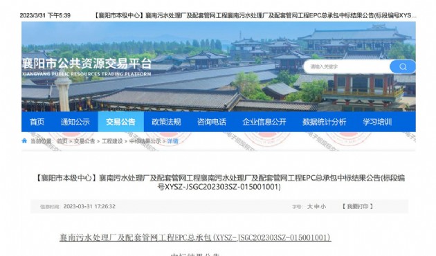 喜訊!漢江城建中標(biāo)襄南污水處理廠 及配套管網(wǎng)工程EPC總承包項(xiàng)目