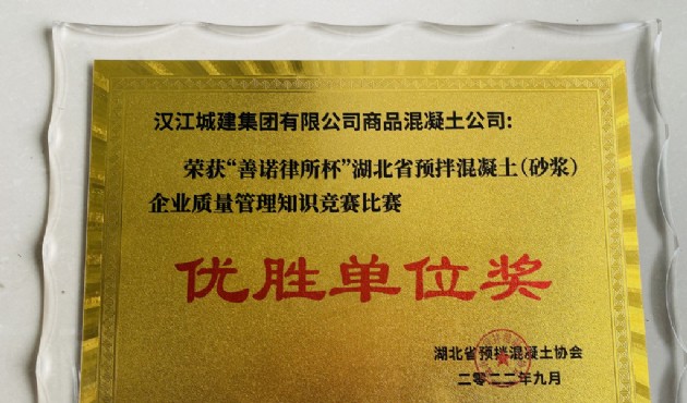近日,漢江城建商品混凝土公司在湖北省預(yù)拌混凝土協(xié)會(huì)舉辦的2022年“善諾律所杯”湖北省預(yù)拌混凝土(砂漿)企業(yè)質(zhì)量管