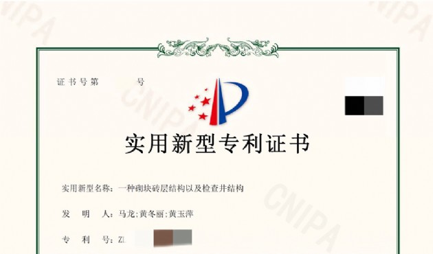 近日,漢江城建新材料公司申報(bào)的專利《一種砌塊磚層結(jié)構(gòu)以及檢查井結(jié)構(gòu)》榮獲國(guó)家知識(shí)產(chǎn)權(quán)局授予的實(shí)用新型專利證書,這為漢江城