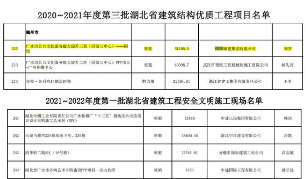近日,湖北省建設(shè)工程質(zhì)量安全協(xié)會公布了2020~2021年度第三批湖北省建筑結(jié)構(gòu)優(yōu)質(zhì)工程項目、2021~2022年度第一批湖北省建筑工程安