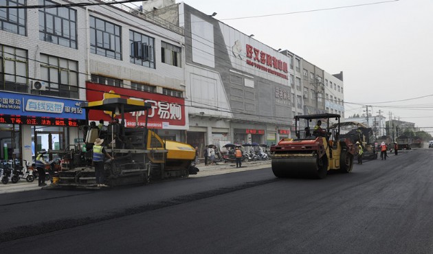 歐廟鎮(zhèn)污水管網改造項目進行瀝青攤鋪