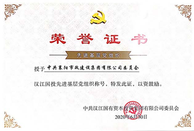 中共襄陽市政建設(shè)集團(tuán)有限公司委員會被中共漢江國有資本投資集團(tuán)有限公司委員會授予“先進(jìn)基層黨組織”榮譽(yù)稱號。